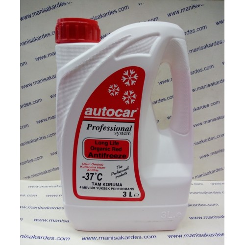 Antifriz 3 Litre -37 c Organik Autocar Marka Kırmız Renk 4 Mevsim Tam Yüksek Koruma Otomativ, Traktör ve Güneş Enerji Paneli Uyumlu Türk Malı